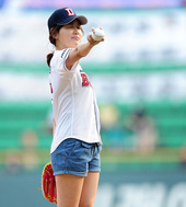 2012.04.18 18: 39'시구' 박진희, '핫팬츠로 마운드 달구다'