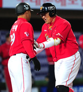 2012.04.18 21: 16최정-조인성,'승부는 이제 끝났어'