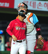 2012.04.19 21: 23정근우,'150Km대 공 너무 아프네'