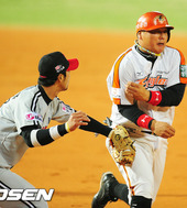 2012.04.19 21: 02김태균,'도루실패, 귀루 중 태그아웃!'