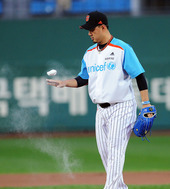 2012.04.19 19: 17롯데 선발 송승준,'비 오니깐 로진가루 묻히고'