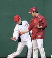 2012.04.19 16: 45이강철 코치,'김병현에게 잠수함 투구법 비법 전수'