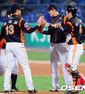 2012.04.20 22: 44박종윤-강민호,'좋은 경기였어!'