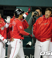 2012.04.20 20: 31조인성, '솔로포 김강민, 엉덩이 찰싹'