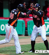 2012.04.20 19: 23박종윤-홍성흔,'투런포 좋았어!'