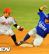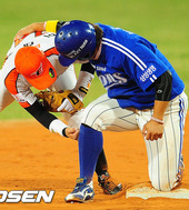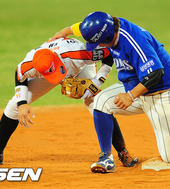 2012.04.20 21: 17박석민,'도루 성공하며 이대수의 발을 밟아!'