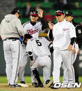 2012.04.20 21: 16이병규-김기태 감독, '3연승 신바람 손가락 세리머니'