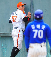 2012.04.22 15: 48이대수,'안타까운 표정으로 송구 볼을 바라보며'