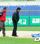 2012.04.22 12: 19선동렬-양승호,'오늘 경기 못 하겠죠?'