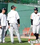 2012.04.27 17: 08조성환-이병규-홍성흔,'고참들의 여유로운 대화'