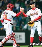 2012.04.28 20: 35정우람-최경철,'삼구 삼진으로 끝냈어'