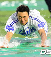 2012.05.01 18: 57우천 세레머니 이승엽,'팬들 위해서라면 몸 사리지 않아요'
