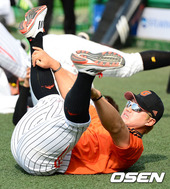 2012.05.01 17: 39홍성흔,'쩍벌포즈에 빛나는 무쇠허벅지'