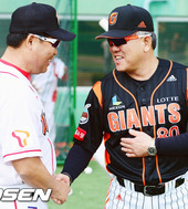 2012.05.04 18: 04이만수 감독-양승호 감독,'반갑게 악수를 나누며'
