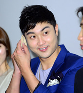 2012.05.04 13: 28플레시 세례에 땀 닦는 여현수, '간담회 긴장되네'