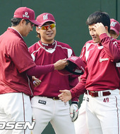 2012.05.08 16: 32김병현,'정민태 코치님, 제 모자에 문제가 있나요?'