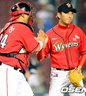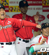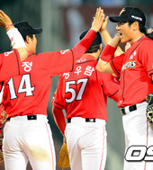 2012.05.08 21: 46정우람-최정,'좋아 이제 1위다!'