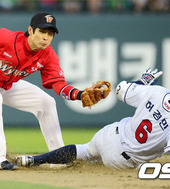2012.05.10 19: 13강정호,'모래바람을 일으키며 귀루했지만, 태그아웃!'