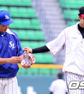2012.05.11 16: 58박석민-정성훈, '누구 글러브가 좋나?'
