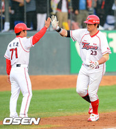 2012.05.12 19: 01김현수,'준석이 형 솔로포 멋진데?'