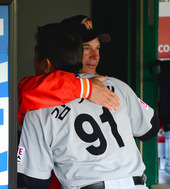 2012.05.15 17: 41'조 알바레즈 코치에게 안긴 김기태 감독'