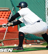 2012.05.16 16: 53홍성흔,'무쇠 허벅지를 자랑하며 번트훈련'