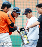2012.05.17 16: 39강민호,'성흔이형! 우리 배트 바꿔서 써봐요!'