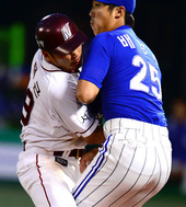 2012.05.18 19: 52배영수-이택근,'그라운드에서 격투기(?) 한판'