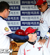 2012.05.18 18: 02김상훈-양현종,'극명한 피부톤 차이'