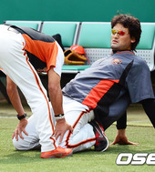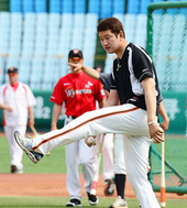 2012.05.19 15: 57박찬호,'코치님 좀 더 세게 눌러주세요'