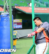 2012.05.19 15: 48김태균,'샌드백을 배트로 치며 화끈한 훈련'