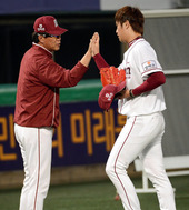 김기태 감독,'진영아! 들어와! 손가락 세리머니 해야지'