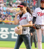 2012.06.02 19: 12야구장 찾은 공현주,'3번째 시구를 끝내고 밝은표정'