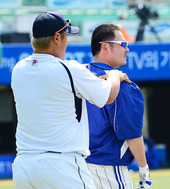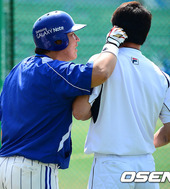 2012.06.03 15: 35최준석,'진갑용에게 애교(?)'