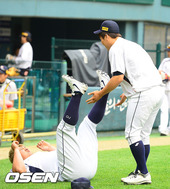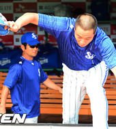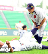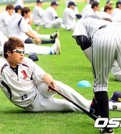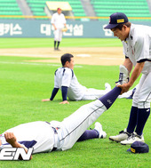 2012.06.08 16: 49김현수,'준석이형! 스트레칭해야 살 빠지죠'