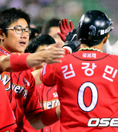 2012.06.12 21: 52'선수들에게 축하받는 김강민'