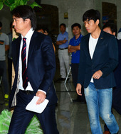 2012.06.13 11: 54홍명보 감독과 함께 기자회견장에 입장하는 박주영