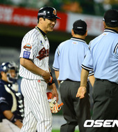 2012.06.14 21: 29판정 기다리는 김주찬,'정말 맞았다니까요'