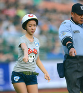 2012.06.14 20: 11롯데 배트걸 신소정,'심판 따라잡기'