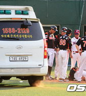 2012.06.17 18: 27박준서의 부상에 구장으로 들어오는 엠뷸런스