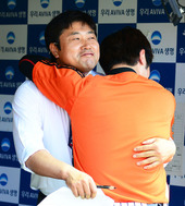 강민호,'양준혁 해설위원과 뜨거운 포옹!'