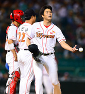 2012.06.20 20: 28교체되는 SK 선발 김광현,'5⅔이닝 1실점 호투'