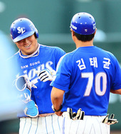 2012.06.23 19: 03김상수,'균형을 잃고 김민성에게 기대'