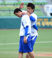 2012.06.27 16: 45정근우,'(조)동찬이 일찍 왔네~'