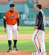 2012.06.28 18: 02마운드 오른 최진행,'현진아! 거리가 꽤 머네'