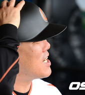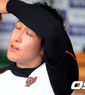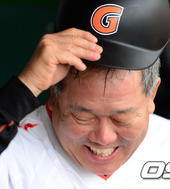 2012.07.03 16: 41양승호 감독, '민호 헬맷 쓰니 앞이 안보여'