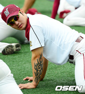 2012.07.03 16: 38박병호,'타투가 화려하죠?'