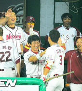 2012.07.04 20: 24김민성 스리런포에 깜짝축하쇼를 하는 동료들