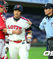 2012.07.04 19: 37사구 맞은 홍성흔, '나 화났어'