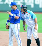 홍성흔, '승엽아! 무슨 얘기하니?'